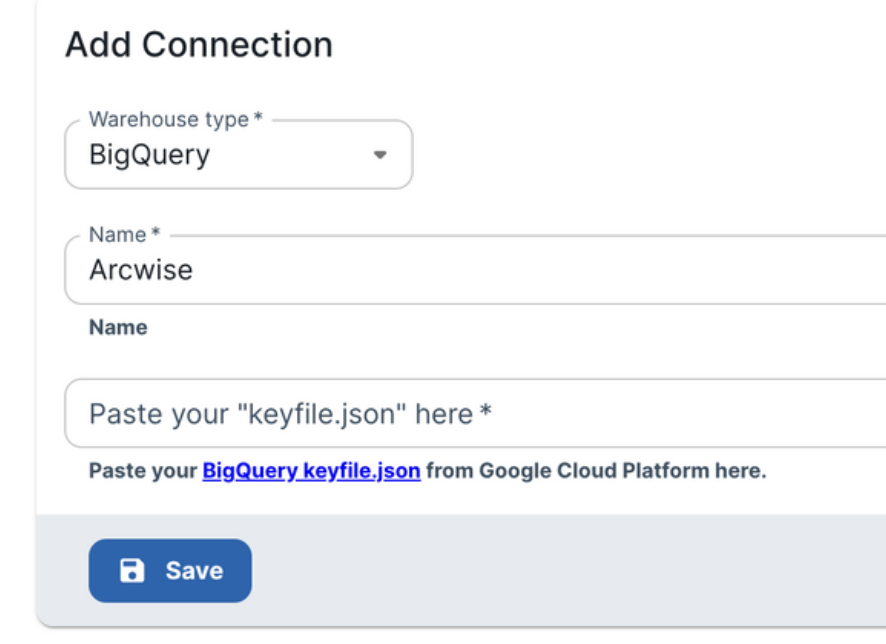 ArcwiseGrant the service account the proper level of access to BigQuery. More information on permissions here. Access should be granted from IAM management. Minimally, Arcwise requires:
