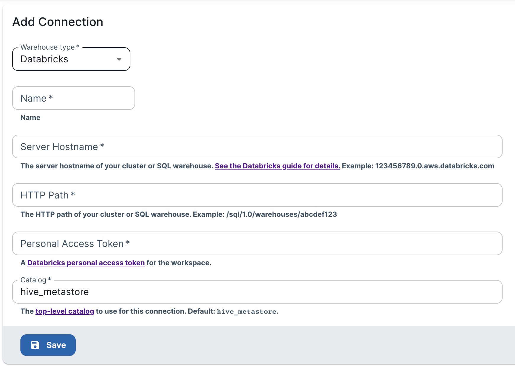 Catalog - The top-level catalog (as shown in Databricks' Data Explorer) that you would like Arcwise to access. If you're not using Unity Catalog, this must be
