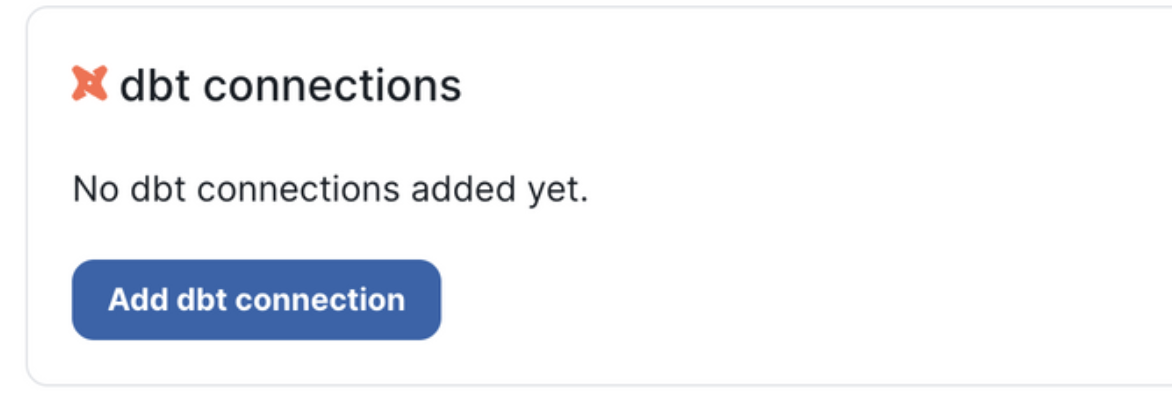 2. Go to the **dbt connections** section and click the **Add dbt connection** button.<br>