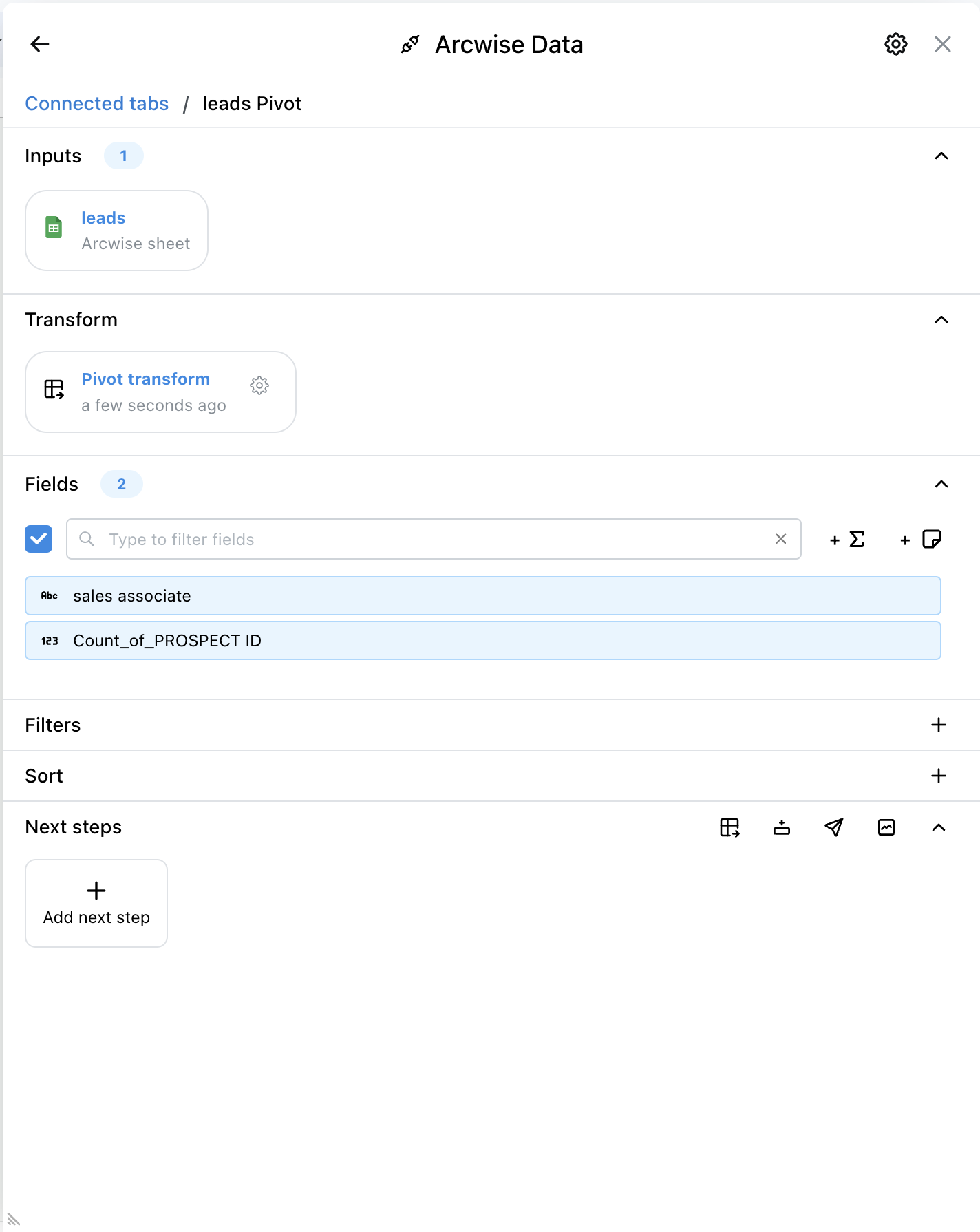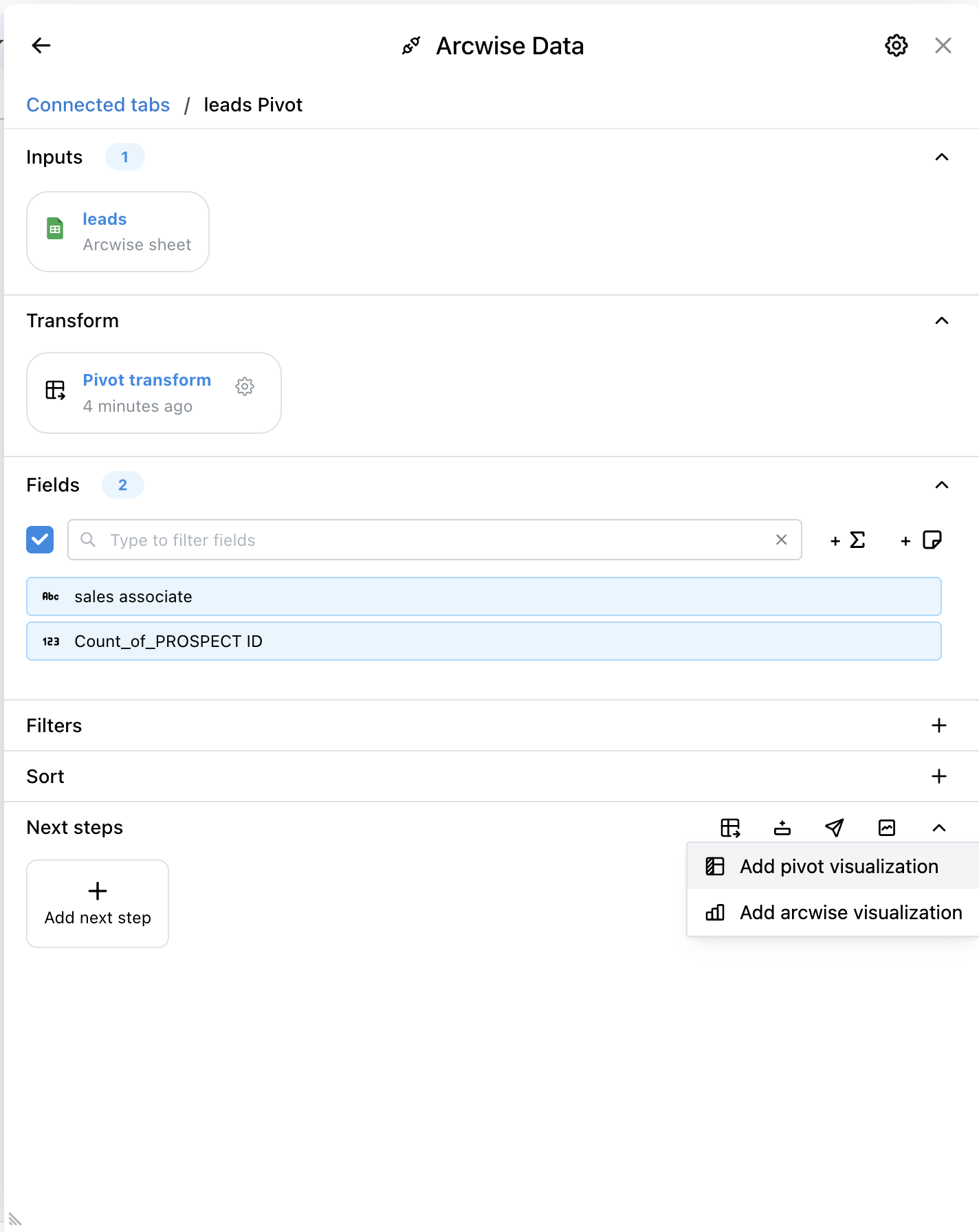 2\) En la parte superior de la sección Próximos pasos, haga clic en el icono de visualización y seleccione Visualización Arcwise.
