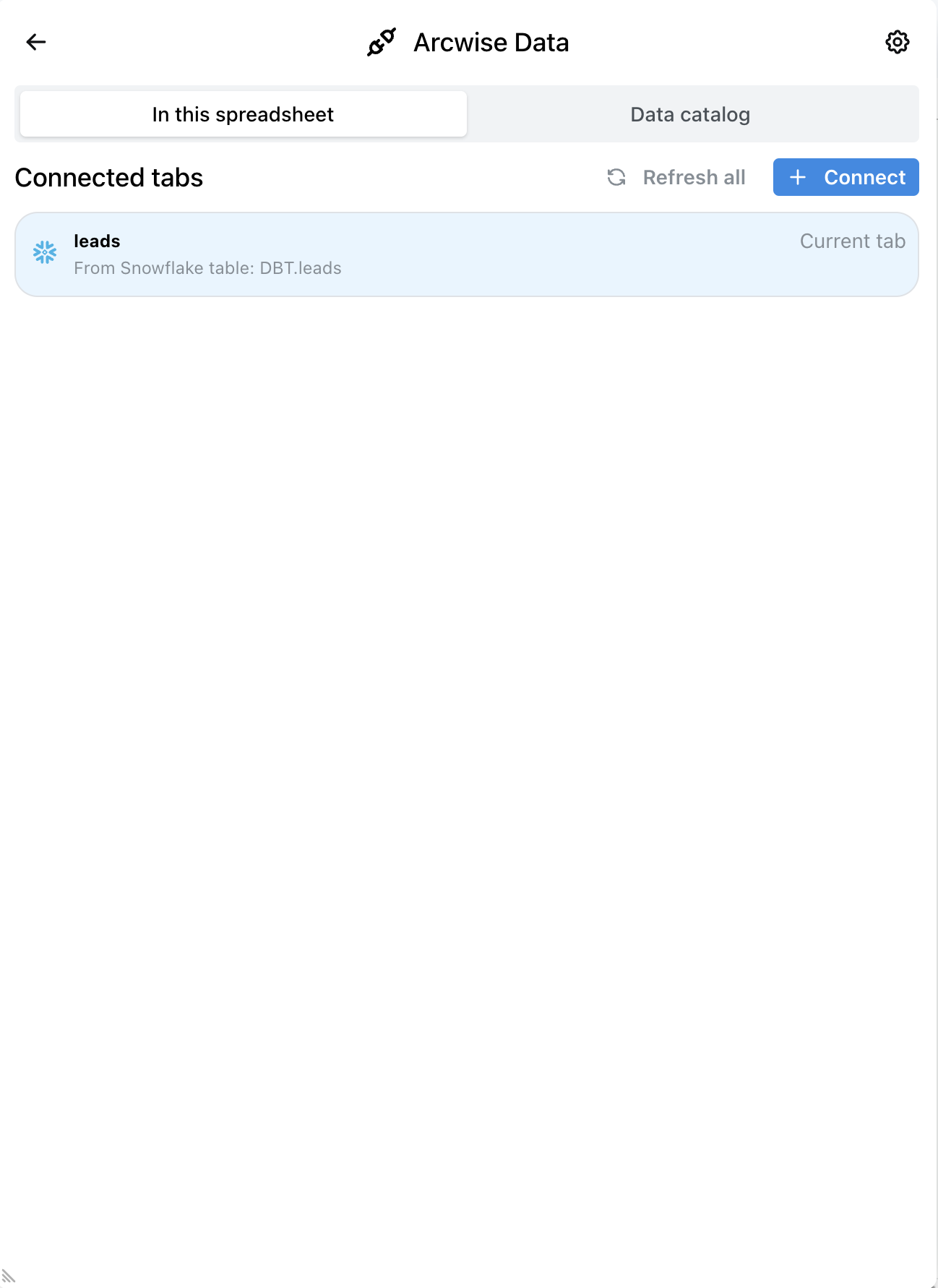 1\) Navegue a la pestaña de datos conectados de Arcwise en Google Sheets