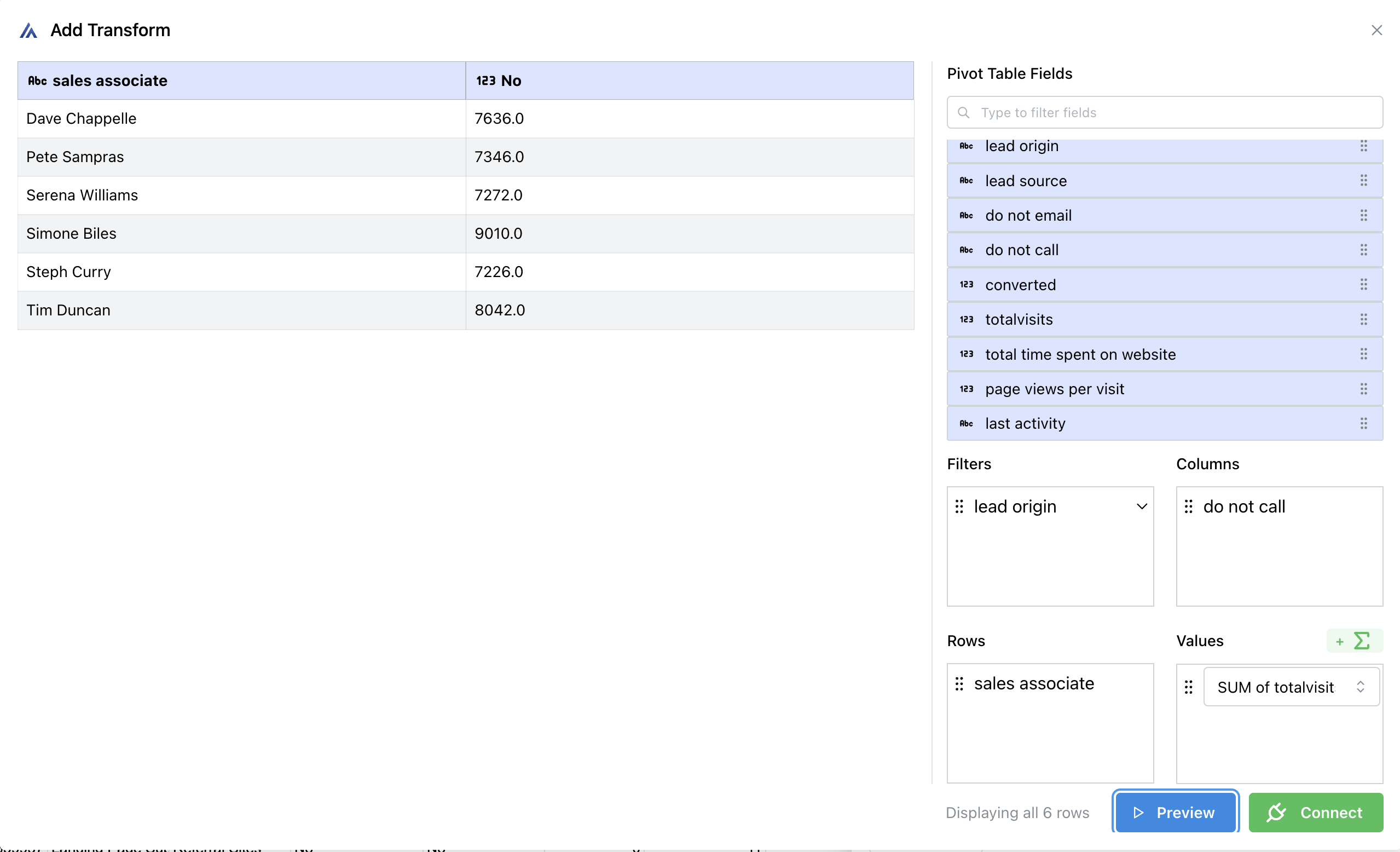 4\) Cuando el resultado parezca correcto, haga clic en el botón verde Conectar en la esquina inferior derecha.